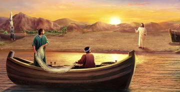 Ko je hodil ob Galilejskem jezeru, je zagledal dva brata: Simona, ki se je imenoval Peter, in njegovega brata Andreja. Metala sta mrežo v jezero; bila sta namreč ribiča. Rekel jima je: »Hodíta za menoj in narédil vaju bom za ribiča ljudi.« Takoj sta pustila mreže in šla za njim. In ko je šel od tam naprej, je zagledal dva druga brata: Jakoba, Zebedêjevega sina, in njegovega brata Janeza, ki sta s svojim očetom Zebedêjem v čolnu popravljala mreže. Poklical ju je in onadva sta takoj pustila čoln in očeta ter šla za njim. (Mt 4,18-22)